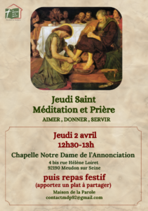- Eucharistie le jeudi à 12h30 suivie d’un repas partagé