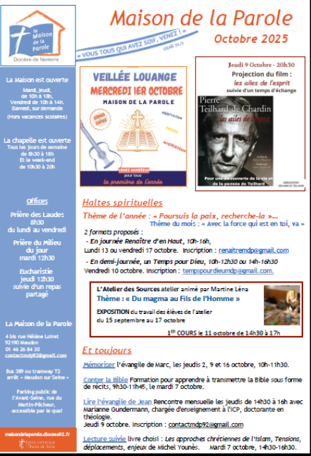 Cette invitation de Jésus à ses disciples s’adresse aujourd’hui à chacun de vous. La Maison de la Parole a pour vocation d’être ce lieu-ressource où chacun peut venir – seul ou en groupe – se ressourcer.