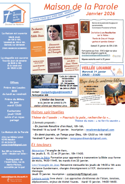 Cette invitation s’adresse aujourd’hui à chacun de vous. La Maison de la Parole a pour vocation d’être ce lieu-ressource où chacun peut venir – seul ou en groupe – se ressourcer.